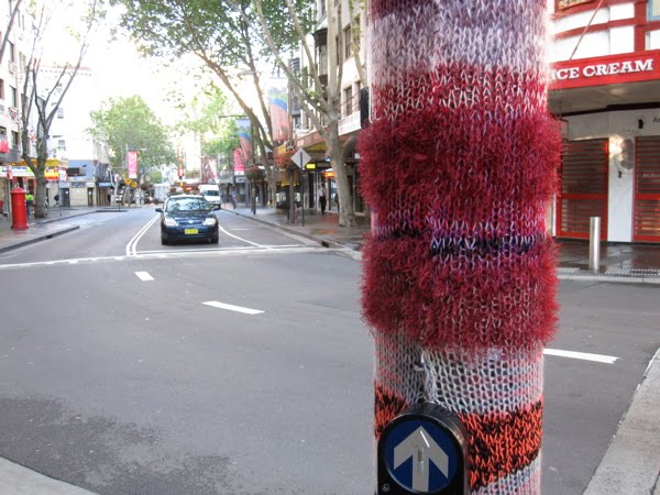 Oops – seems guerilla knitting is a thing, and the rack cosies are just the tip of the iceberg! Thanks, Darlinghurst Nights.