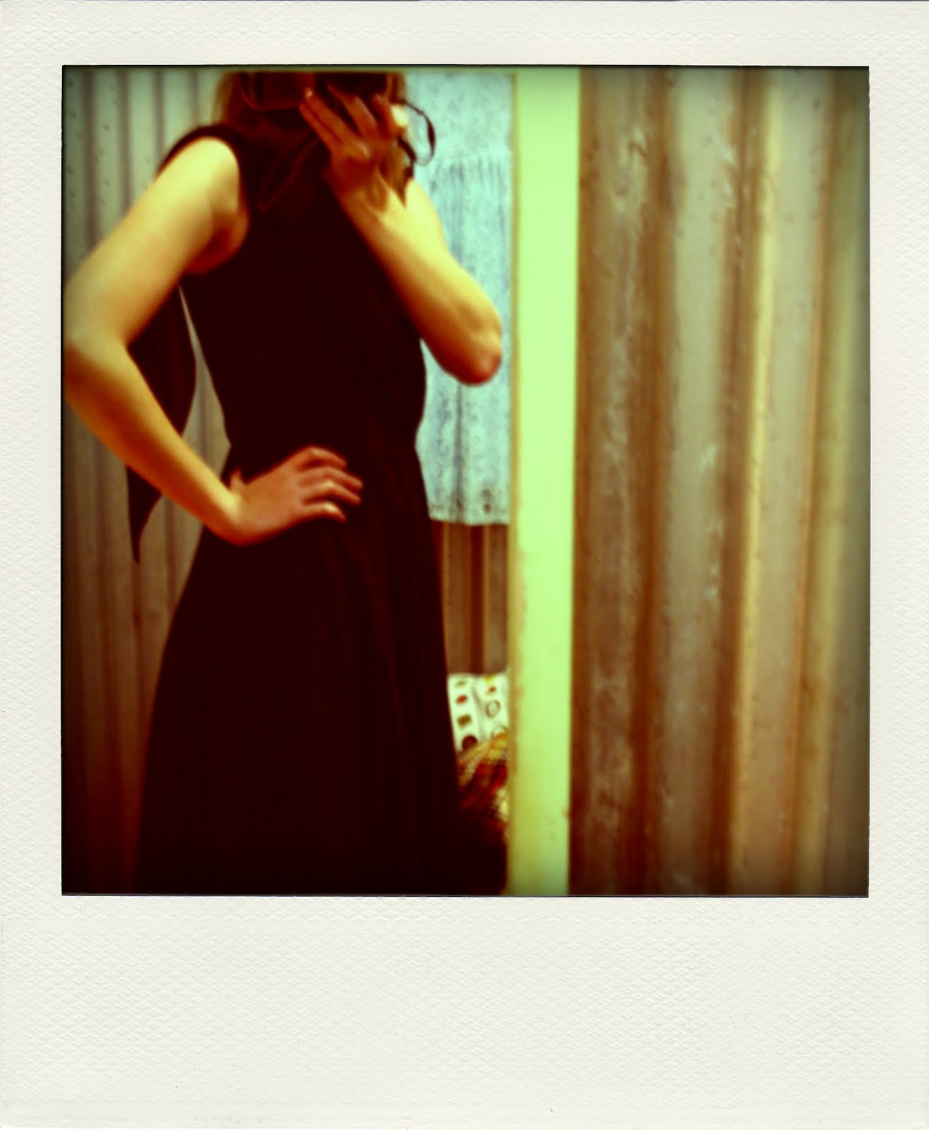 I had to have it; but it still wouldn’t quite fit the 50s theme, or June weather for that matter. So I found a really simple black floaty dress, with a beautiful drape and hemmed at just the right spot below the knee. Clearly it belonged to some obese, but very glamorous, woman in the 1950s. Thank-you m’am!