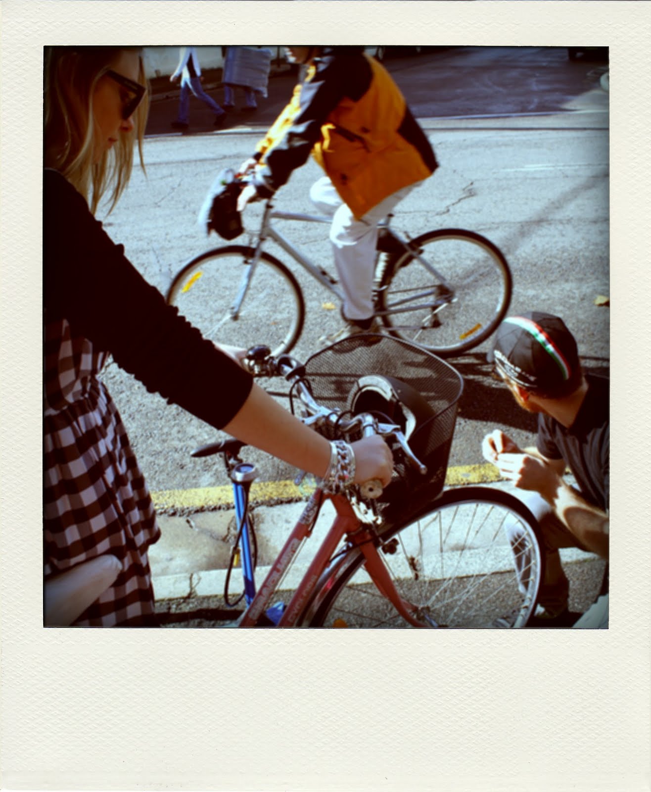Massive shout out has to go to the good folk at Remy & Lee’s cafe on Bourke Street – Alison had a tyre disaster yesterday morning and very nearly didn’t make it to the Small Stories Big Picture ride… We stopped by to see if they could help us get the Heartbreaker roadworthy. Remy not only let us use their pump, he even took time out from making coffees to fix her tyre. It was above and beyond the call of duty – what a legend.