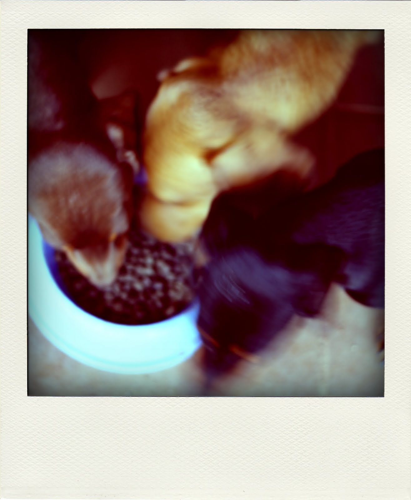 The girls are mostly named after various friends – Pepper is named for her markings, but Cherry is after a strawberry blonde pal, Lady Valentine after Sarah, Darling Emily for our third musketeer over in the UK, and chocolate brown Truffles Fletcher after yours truly. I may be biased but Truffles is clearly the cutest. She takes after her namesake in other ways – she is ALWAYS eating.