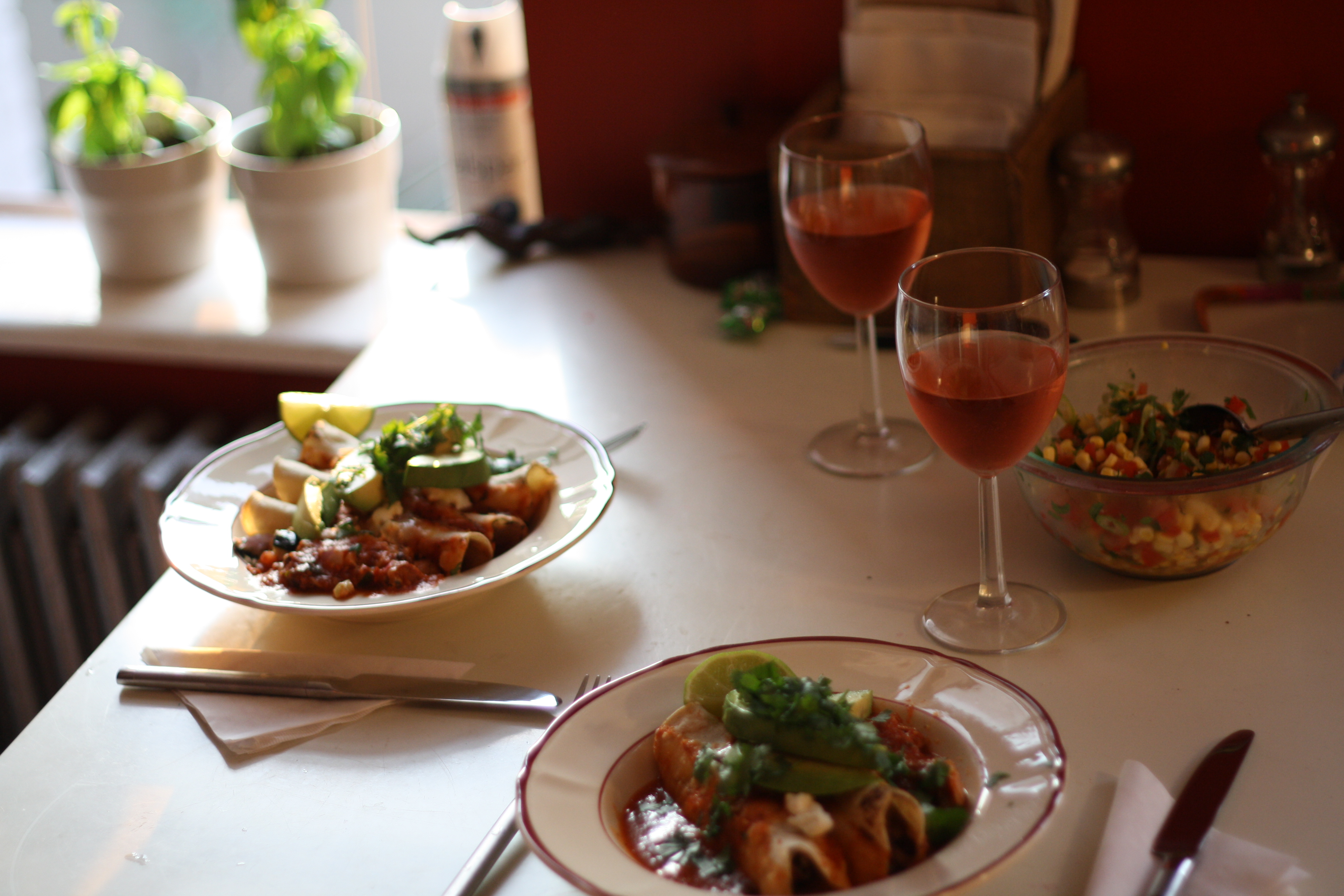 The enchiladas were ridiculously good though. How could they not be, stuffed with goats cheese and roasted zucchini? File under “how can something this good be vegetarian” and “to cook, immediately”.