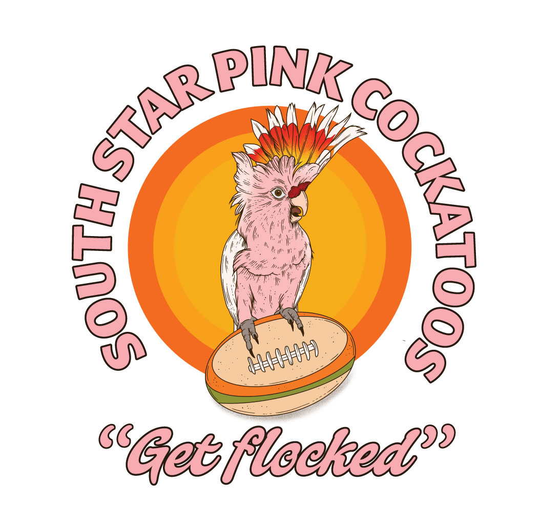 I might have got a bit too carried away with this fictional team, but I became obsessed with the idea of creating some Pink Cockatoos merch. The wonderful Queensland artist Mel Baxter (Moonshine Madness) ran with my idea and created this logo for the team, which I love.