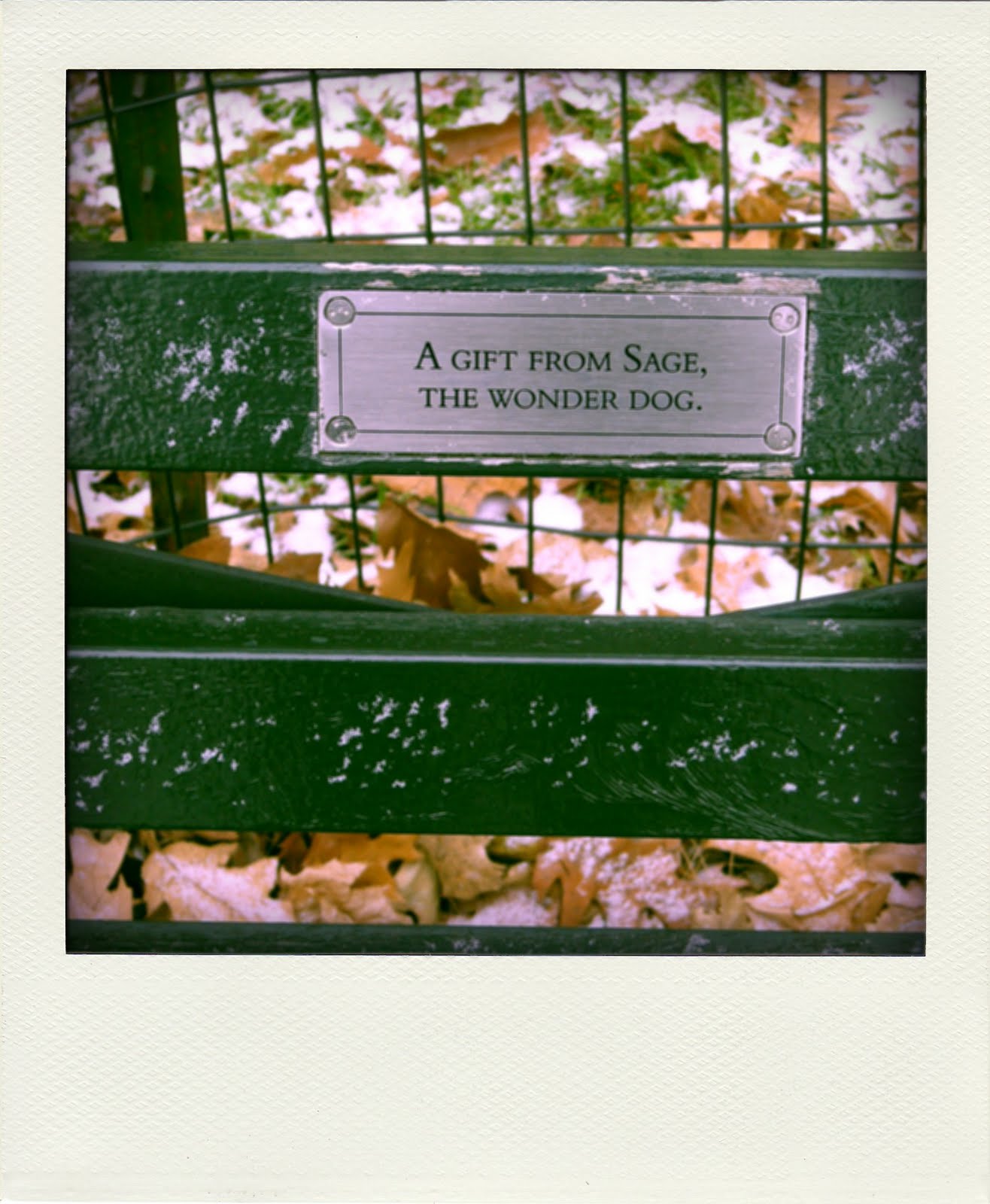 Just one more thing. Maybe the best thing about New York is the little dedications on the Central Park park benches. Each one a short story.