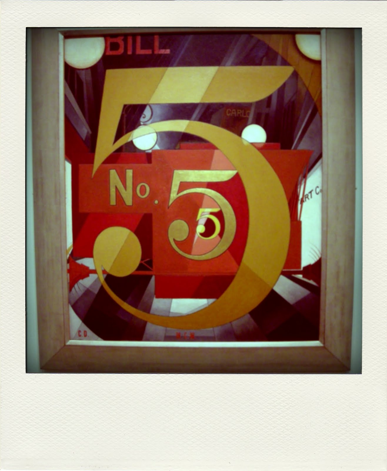 Within the portrait Demuth arranges shapes and symbols related to Williams – the poet’s initials, the names “Bill” and “Carlo”. And the colours of course perfectly capture that zinging kinetic tension of the shiny red firetruck, emblazoned with its figure five, in gold.