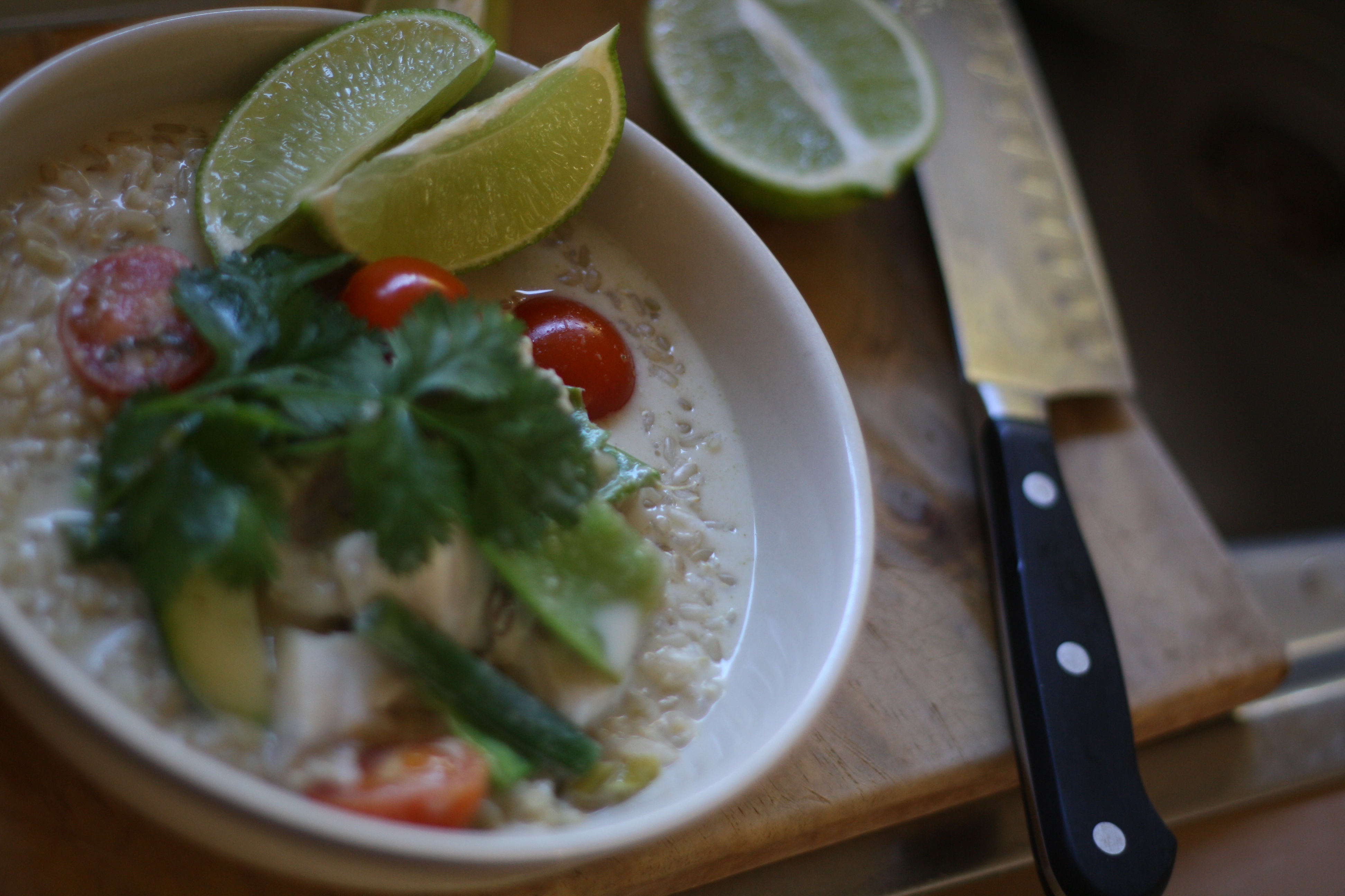 Also known as golden perch, the sweet fresh flesh worked perfectly with the crunchy vegetables and subtle green curry spices. As well as the beans and tomatoes, I threw in some zucchini and snow peas I had lying around. Is it just me, or is it insanely pleasurable to have all your vegetables perfectly cut and ready to go when you start to make a curry or stirfry? Kaffir lime leaves proved impossible to find out here so I substituted the zest and juice of a lime and some fresh lemon basil from our garden, cut into fine ribbons. I also added quite a bit more brown sugar to balance out the saltiness – maybe the stock I used was too salty, or I should have gone easier on the fish sauce. I made a pot of brown rice to serve with this, starting the rice cooking in the absorption method just before I began my prep on the curry. Brown rice is so good for you and so much nuttier and tastier than white rice, as well as having a lovely texture. In all I was super happy with the results (as was my dad!) and I’d highly recommend this recipe.