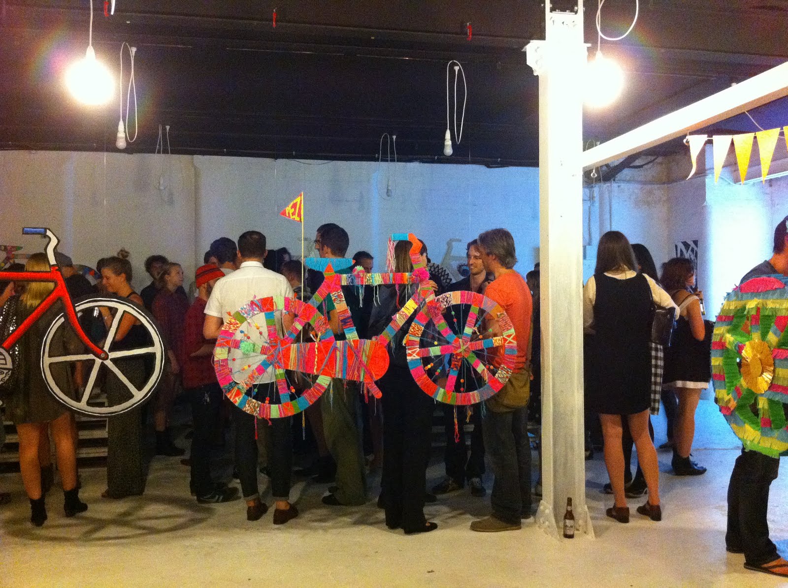 Thursday night just gone marked the launch of the Sydney Bicycle Film Festival‘s art night and the Ride: Life In The Bike Lane exhibition. By all accounts it was a great night at District 01 Gallery, and we have the lovely Andrew Quilty to thank for these pics. Quilts himself had a bike on show but was so modest he didn’t even send me a shot of his own work!